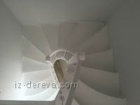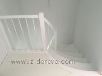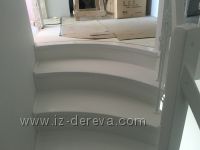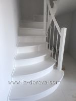 Лестница из ясеня в дом с радиусными перилами. Цвет белый лак.