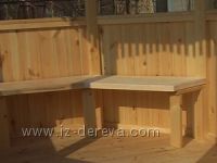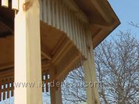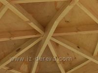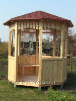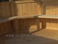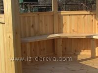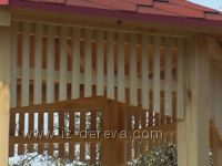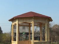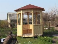 Беседка изготовлена из сосны. Может быть вскрыта лаком или тонирована под любой вид древесины.